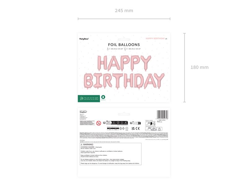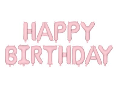 Matinė folinė girlianda HAPPY BIRTHDAY, rožinė, dydis apie 340 × 35 cm (134 × 14”). Pripūsti tik oru. Balionas savaime užsandarėjantis. Yra 4 kilpos patogiam pritvirtinimui prie juostelės.