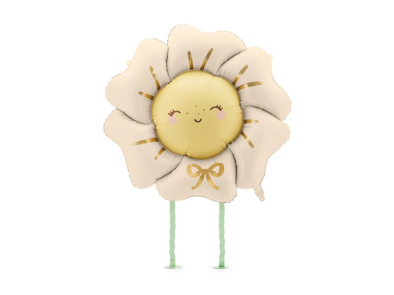 Vaikščiojantis folinis balionas gėlė kreminės spalvos. Heliu pučiamas balionas. Dydis prieš pripūtimą. 104 x 104 cm, dydis po pripūtimo 80 x 80 cm. Kojų aukštis apie 40 cm.