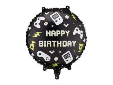 Folinis balionas juodas su spalvingais žaidimų motyvais ir baltu užrašu. Dydis prieš pripūtimą: apie 45 x 45 cm (18 x 18”), po pripūtimo: apie 35 x 35 cm (14 x 14”). Pripučiama oru arba heliu. Rinkinyje yra šiaudelis.