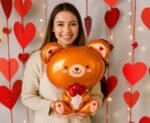 Folinis balionas TEDDY BEAR WITH ROSE