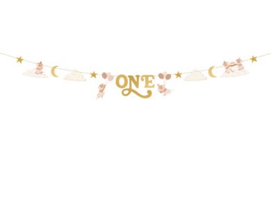 „One“ girlianda su peliukais, smėlio spalvos su auksiniais elementais,