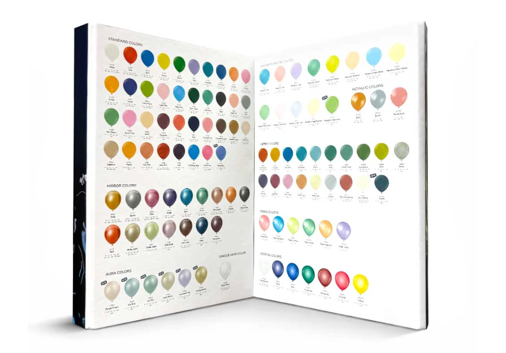KALISAN spalvų katalogo knyga – tai praktiškas įrankis spalvų derinimui ir klientų konsultacijoms balionų dekoravimo srityje. Knyga su kietu viršeliu išskleidžiama ir joje pateikiami ryškūs 12″ KALISAN lateksiniai balionai, leidžiantys lengvai ir tiksliai pasirinkti norimą spalvą.
