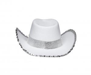 Baltos spalvos kaubojiška skrybėlė nuotakai