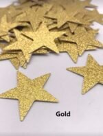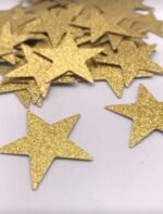 Popierės auksinės žvaigždutės konfeti, tinka papuošti stalui.