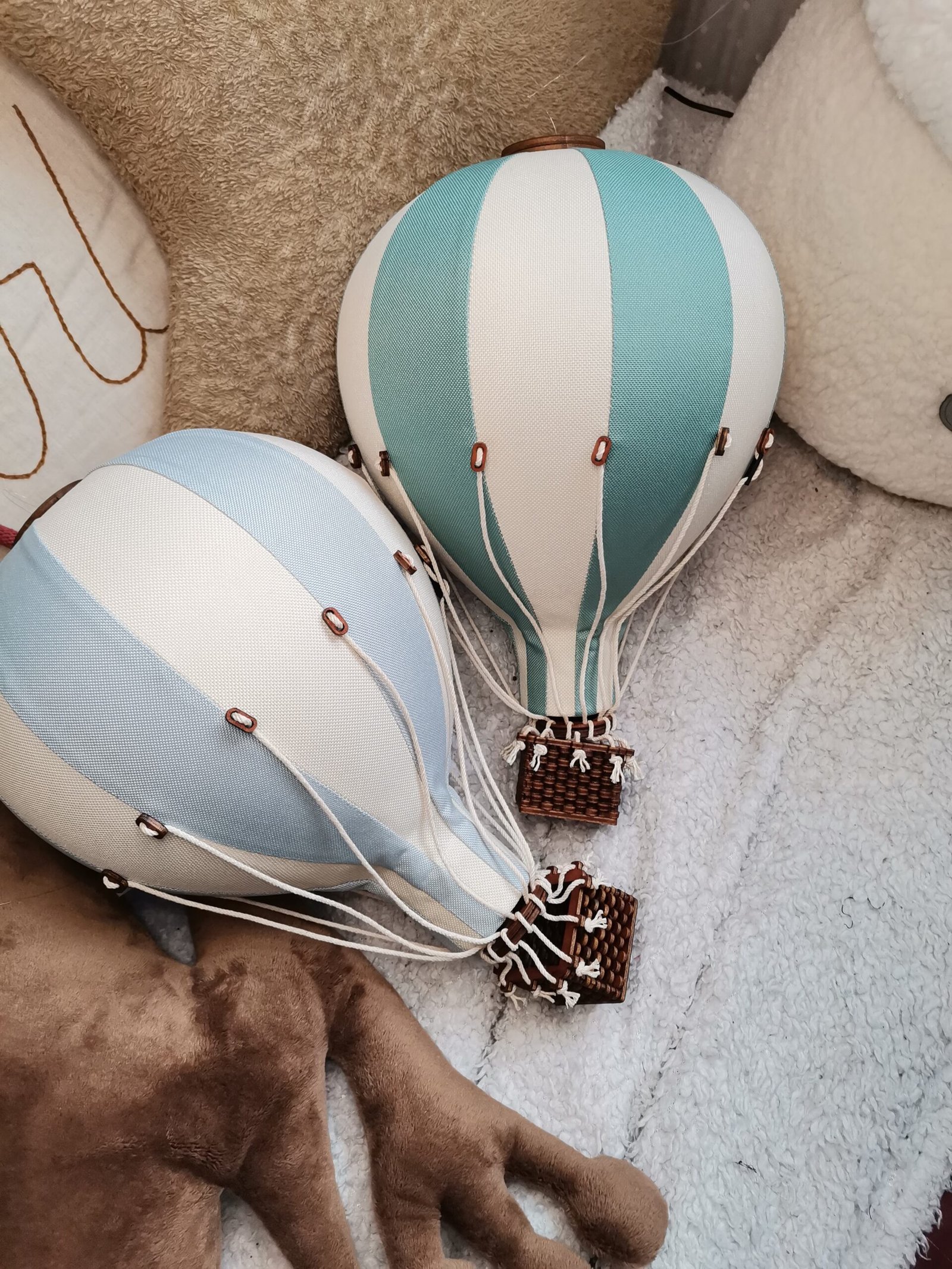 Sukurkite stilingą ir šiltą atmosferą vaikų kambaryje ar žaidimų erdvėje su šiuo ypatingai stilingu dekoratyviniu oro balionu. Rankų darbo balionas atrodo neįtikėtinai realistiškai – pintas krepšys, tvirtas balionas ir virvelės sukuria tikro oro baliono vaizdą. Balionas pagamintas iš itin kokybiškų medžiagų, todėl yra ilgaamžis ir lengvai tvirtinimas prie sienos arba lubų.