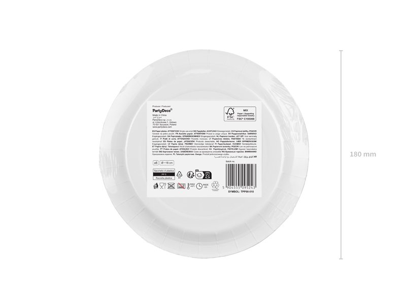 Apvalios Popierinės lėkštutės juodos spalvos, skersmuo apytiksl. 18 cm. (1 pkt / 6 vnt.)