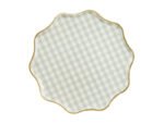 Žalios languotos popierinės lėkštutės su auksiniais, blizgančiais kraštais. Skersmuo apie 23 cm.