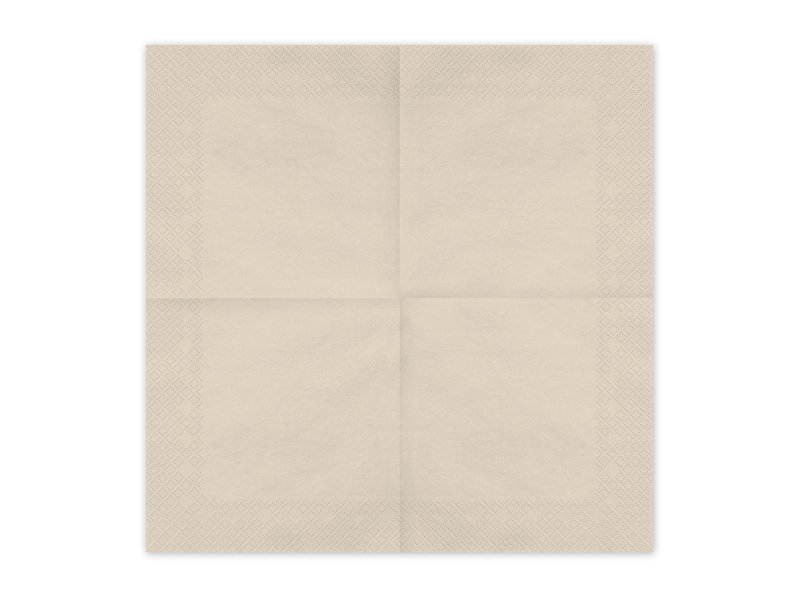 Smėlio spalvos popierinės servetėlės. Išskleistos matmenys apie 33 × 33 cm, sulankstytos – apie 16,5 × 16,5 cm. (1 pak. / 20 vnt.)