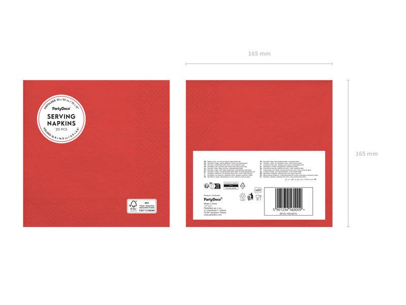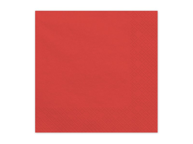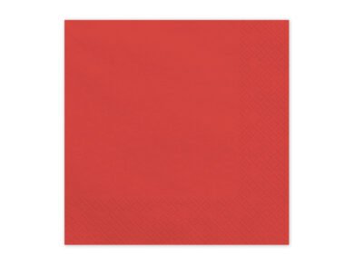 Popierinės servetėlės ​​tamsiai raudonos spalvos. Išskleistas matmenys apytiksl. 33 x 33 cm, sulankstytas apytiksliai. 16,5 x 16,5 cm. (1 pkt / 20 vnt.)