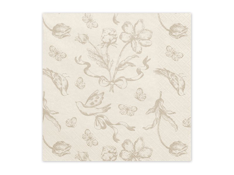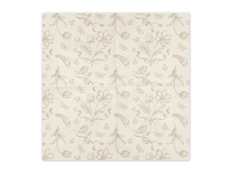 Popierinės servetėlės su gėlėmis. Išmatavimai išskleidus. 33 x 33 cm, Išmatavimai neišskleidus 16.5 x 16.5 cm. (1 pkt / 12 vnt.)