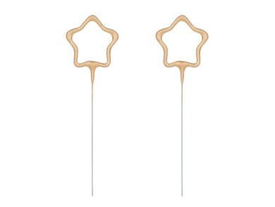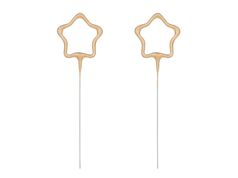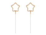 Žvaigždutės formos aukso spalvos bengališkos ugnelės, kurių aukštis apie 16,5 cm. (1 pakelis / 2 vnt.)