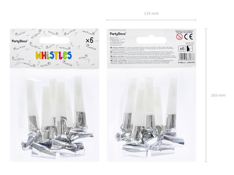 Švilpukai, sidabriniai. (1 pakelis / 6 vnt.)